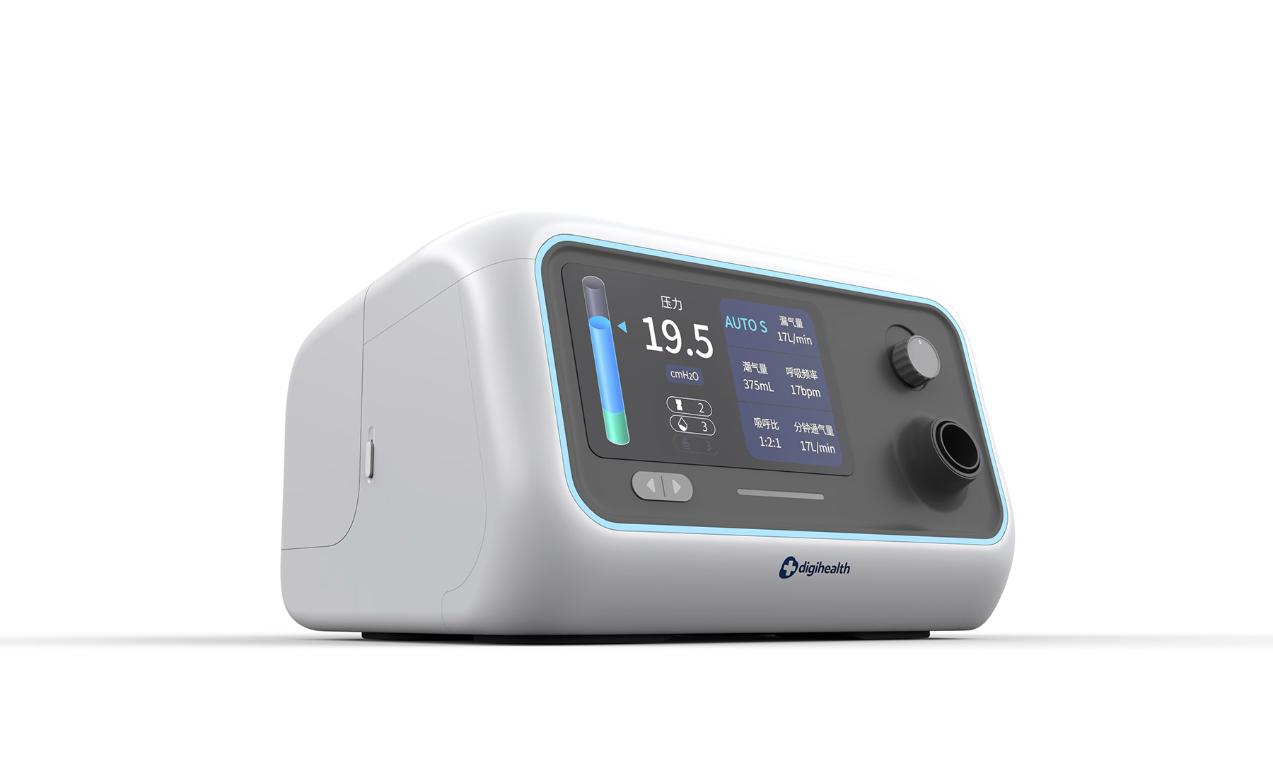 以 “柔和包裹感” 为核心视觉语言,整机采用圆润流线型曲面设计,弱化医疗产品的生硬感,用亲和的形态消弭用户使用时的心理距离。操作上兼顾便捷与精准:触控屏直观呈现压力、通气量等治疗数据,搭配实体旋钮实现参数的细腻调节,双操作模式适配不同使用习惯。