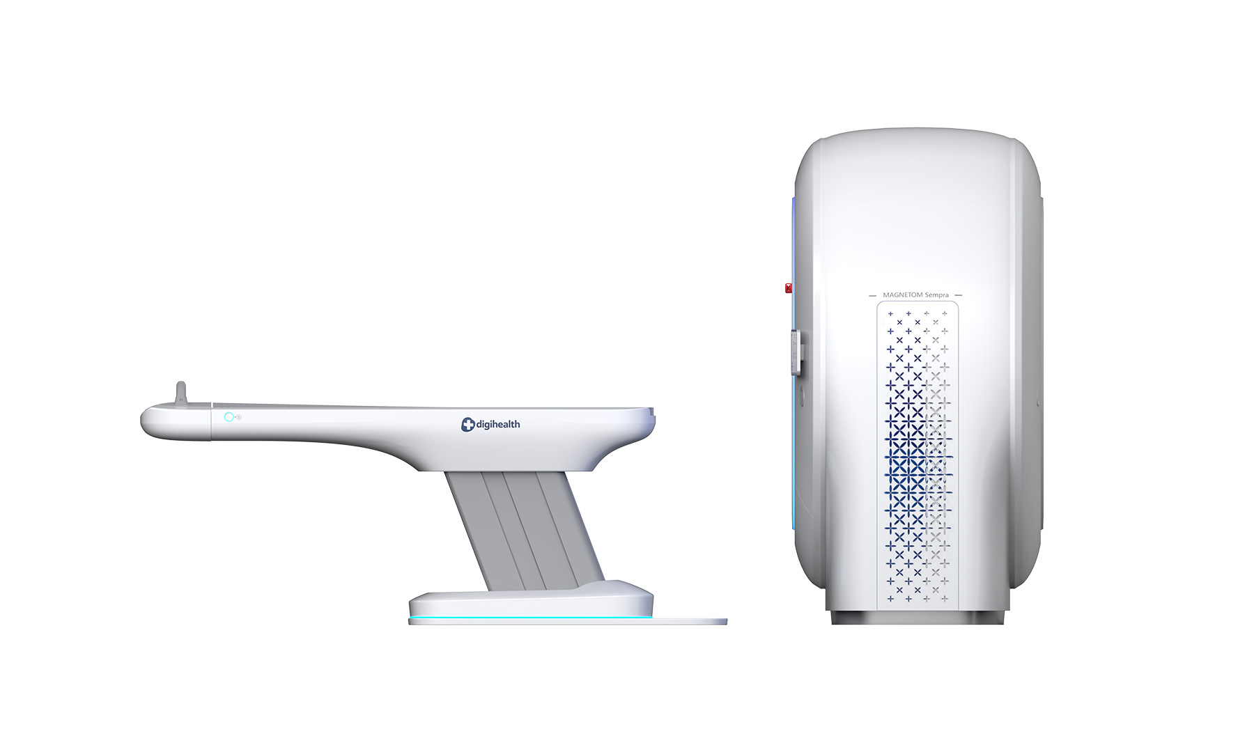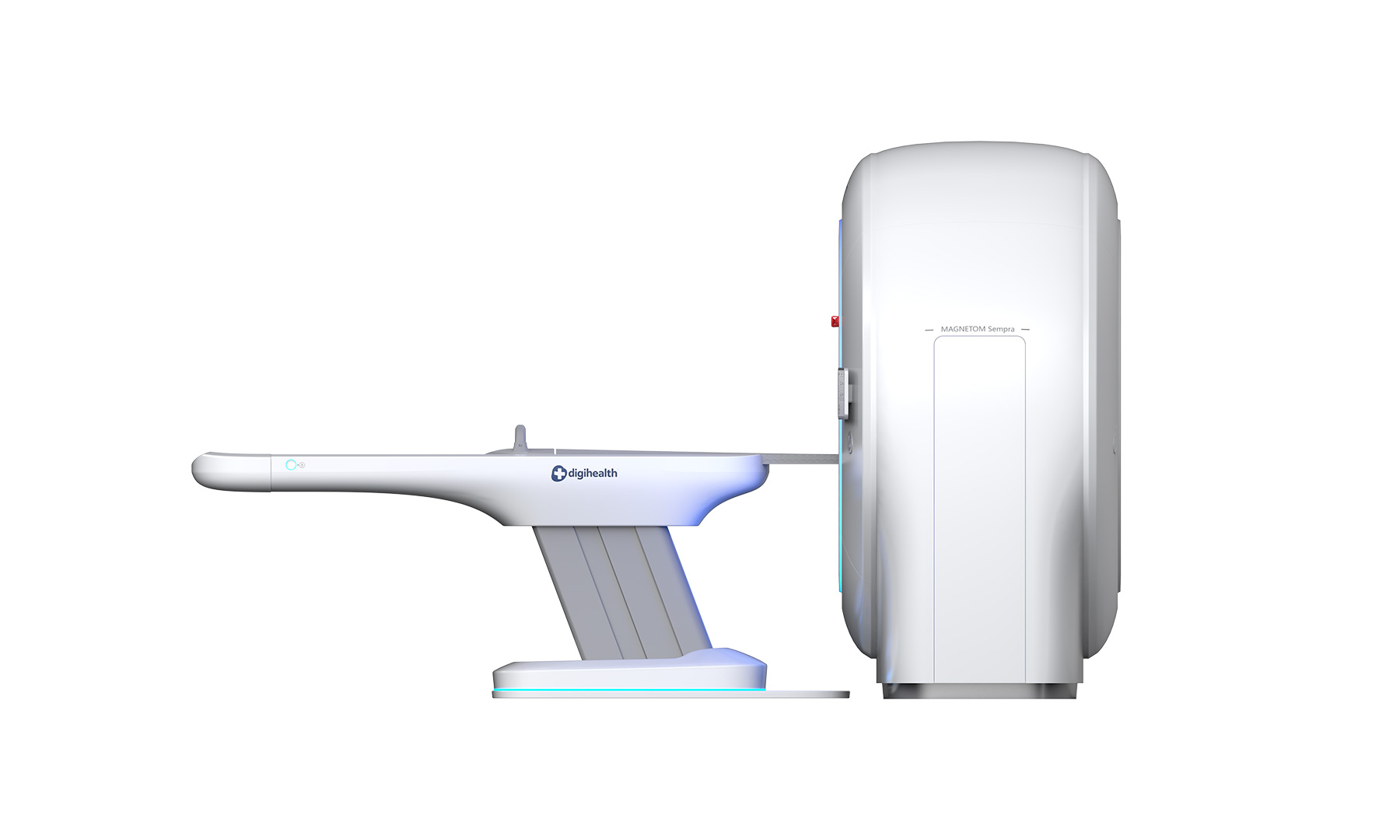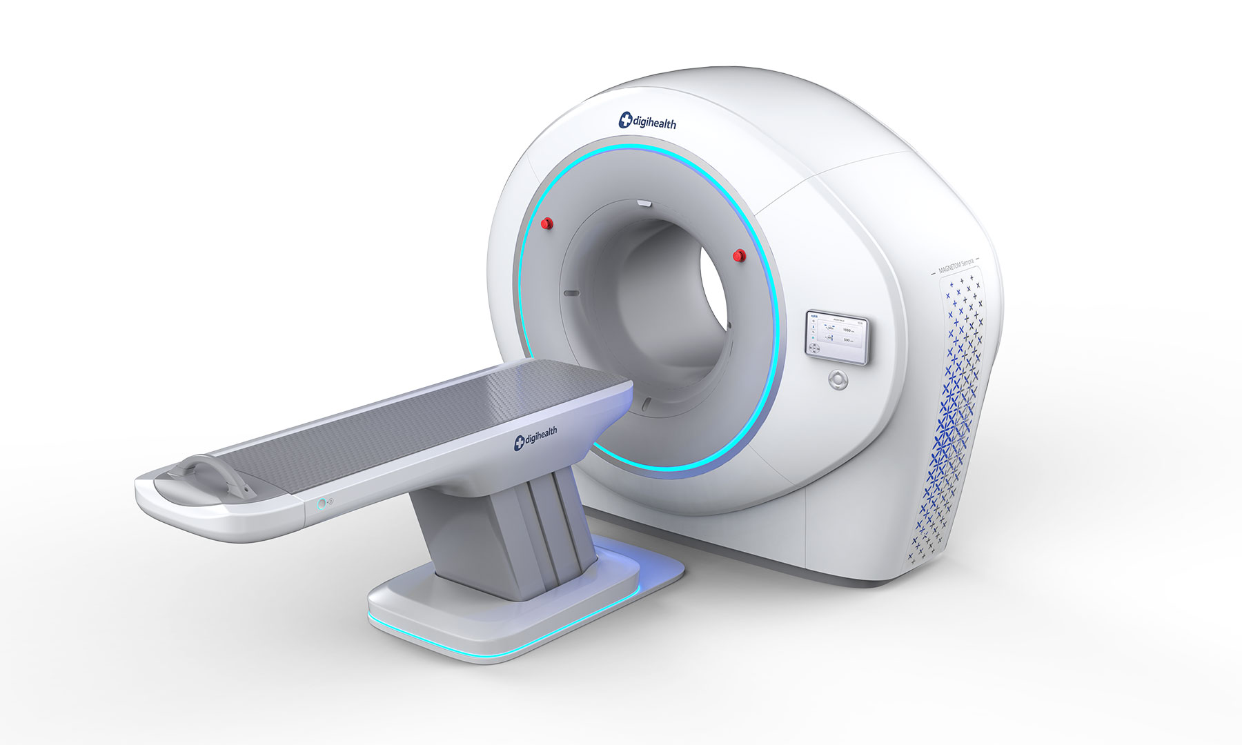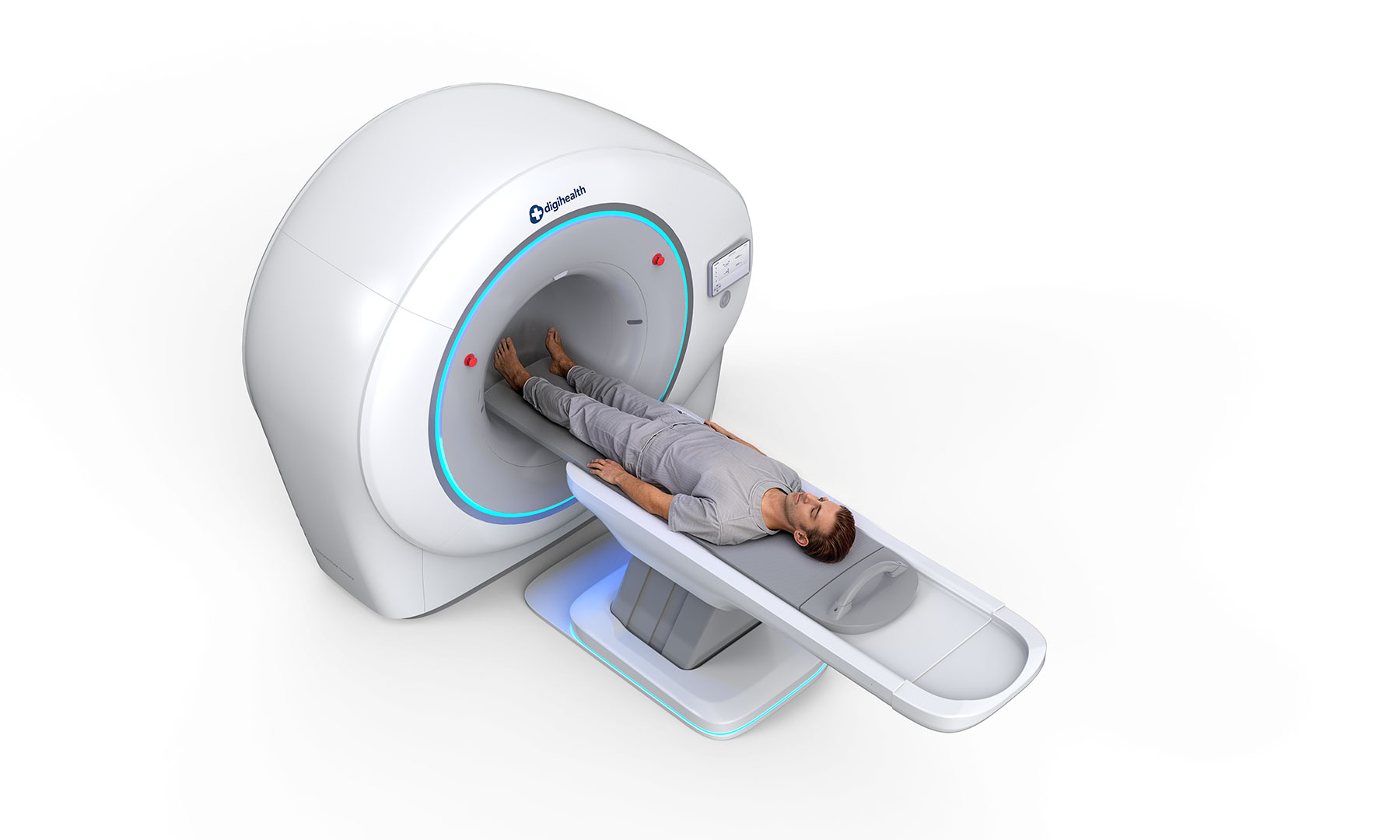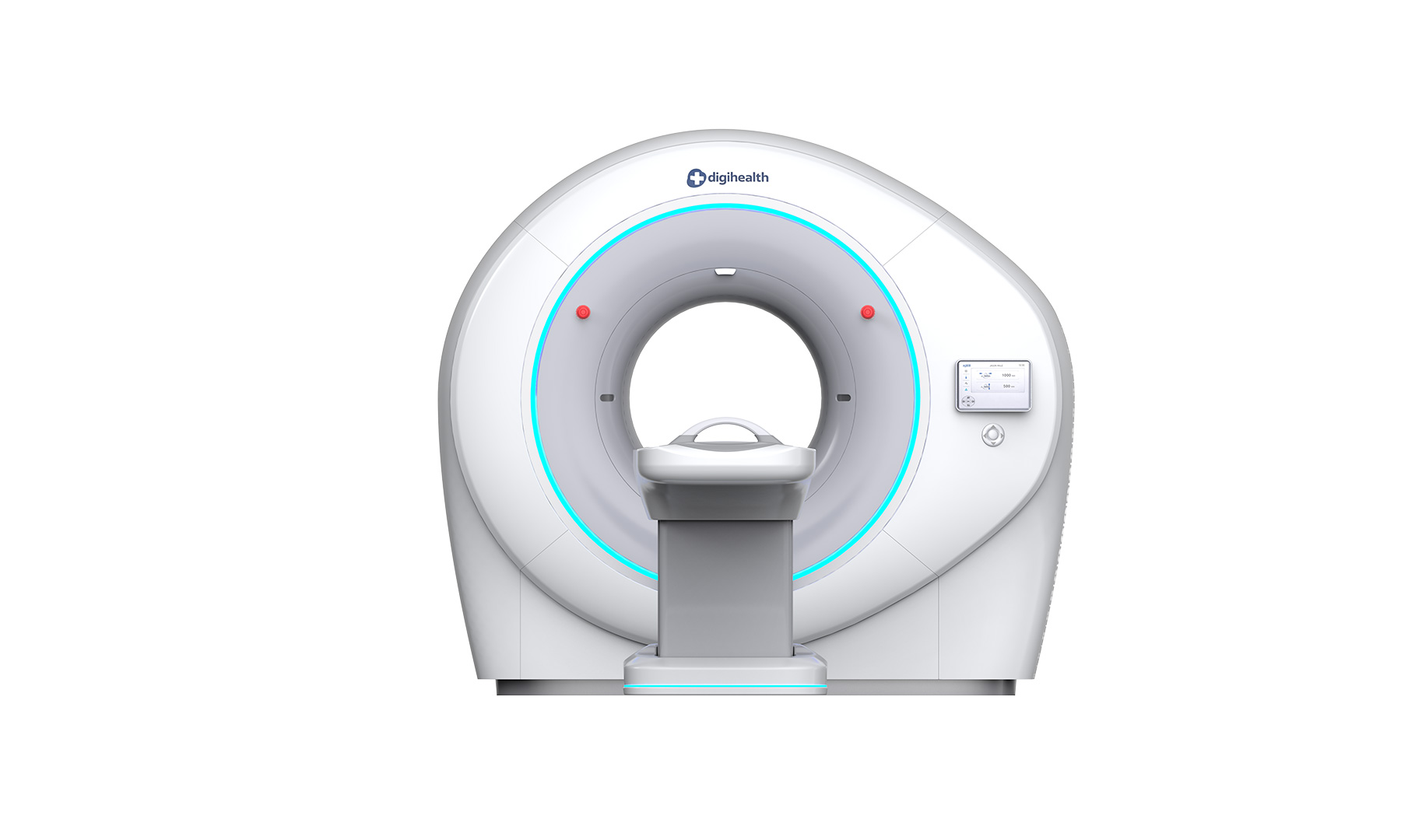 本产品以 “极简环抱” 为核心设计策略 。整机采用大圆率的流线型曲面与一体化机身设计,旨在弱化大型医疗设备带给患者的压迫感与恐惧心,通过亲和、温润的形态消弭用户进入检查室时的心理距离 。在操作体验上,实现了高效流转与细腻调控的平衡 :双侧集成交互: 机身前端配备嵌入式触控系统,直观呈现患者位移信息与扫描状态 。物理辅助控制: 搭配醒目的紧急制动按钮与触觉反馈按键,确保医生在紧急状态下能实现盲操与快速响应 。人体工学床位: 升降床体采用悬浮式结构设计,边缘圆滑处理,不仅方便行动不便者上下,更在视觉上营造出轻盈、安全的治疗氛围 。